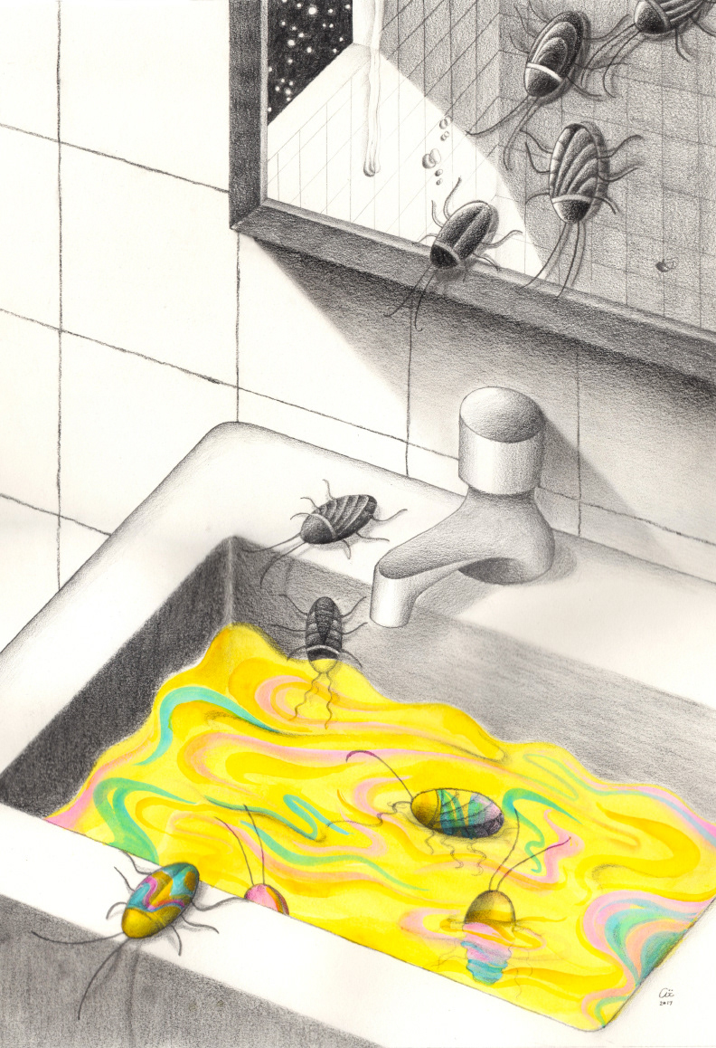 These guys get together in the middle of the night to enjoy secret baths. Inspired by true events. Swarm group show, Light Grey Art Lab, 2017